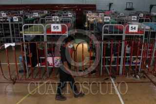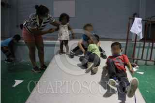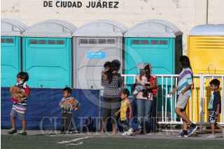 CIUDAD JUÁREZ, CHIHUAHUA, 27ABRIL2021.- Migrantes de países centroamericanos son trasladados a albergues en Ciudad Juárez tras ser deportados de los Estados Unidos, en el albergue Kiki Romero los migrantes en si gran parte niños acompañados por un familiar esperan ser repatriados a sus país de origen o bien una aprobación de asilo políticos Cabe mencionar que las cifras de deportaciones han visto un incremento del 60%, esto en datos del Departamento de Seguridad Interior (DHS, por sus siglas en inglés). FOTO: ROGELIO MORALES /CUARTOSCURO.COM