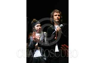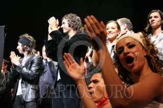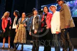MÉXICO, D.F. 18AGOSTO2006.- El musical "Hoy no me puedo levantar" de Nacho Cano, cumplió las cien representaciones, por lo que el elenco lo celebró con una develación de placa, acompañados de la velocista Ana Gabriela Guevara, Fey y el grupo Fobia. FOTO: Isaac Esquivel/CUARTOSCURO.COM