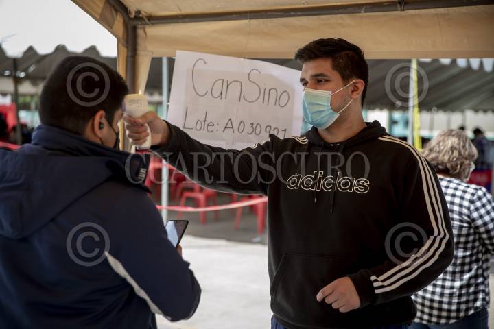 TIJUANA, BAJA CALIFORNIA, 27ABRIL2021.- Este martes inició la aplicación de vacunas contra el Covid-19 para personal educativo, público y privado. De acuerdo a información emitida por autoridades de salud, fueron aplicadas 3,600 dosis de la vacuna canSino en las instalaciones de la Preparatoria Federal Lázaro Cárdenas. FOTO: OMAR MARTÍNEZ /CUARTOSCURO.COM