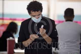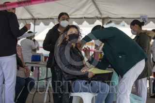 TIJUANA, BAJA CALIFORNIA, 27ABRIL2021.- Este martes inició la aplicación de vacunas contra el Covid-19 para personal educativo, público y privado. De acuerdo a información emitida por autoridades de salud, fueron aplicadas 3,600 dosis de la vacuna canSino en las instalaciones de la Preparatoria Federal Lázaro Cárdenas. FOTO: OMAR MARTÍNEZ /CUARTOSCURO.COM