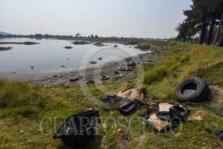 TOLUCA, ESTADO DE MÉXICO, 28ABRIL2021.- La Laguna de Palmillas es un cuerpo de agua ubicado en la zona norte de Toluca, al cual cada año durante el invierno llegan varias especies de aves, pero al igual que otros lugares se ha visto afectada por la falta de lluvia y esto ha dejado al descubierto la contaminación que prevalece en el lugar, todo tipo de desechos se pueden observar en el lugar y cómo ha perdido espacio el agua. FOTO: CRISANTA ESPINOSA AGUILAR /CUARTOSCURO.COM