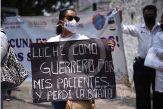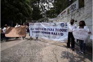 XALAPA, VERACRUZ, 28ABRIL2021.- Personal de salud de Veracruz se considera “sin chaleco” antibalas en la guerra que libran contra el Covid-19, por ello nuevamente se manifestaron en Xalapa, para exigir la dosis pendiente a los trabajadores de Centro Estatal de Cancerología (CECAN) y del Instituto Veracruzano de Salud Mental. FOTO: YERANIA ROLÓN/CUARTOSCURO.COM