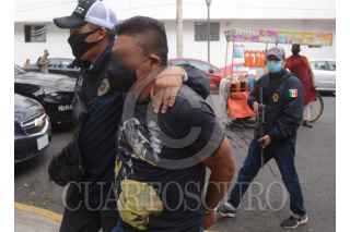 CIUDAD DE MÉXICO, 29ABRIL2021.- La policía capitalina detuvo a un sujeto apodado "Chato" y a otros dos más, en la calle del Carmen, en el Centro Histórico, comerciantes los señalaron de extorsionarlos. Los imputados los llevaron a la agencia 50 del Ministerio Público. FOTO: ARMANDO MONROY/CUARTOSCURO.COM