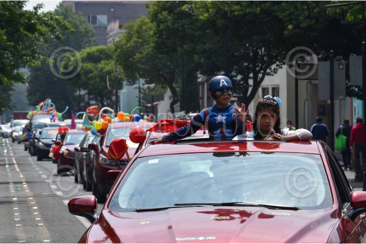 TOLUCA, ESTADO DE MÉXICO, 30ABRIL2021.- En el marco del Día del Niño algunas escuelas realizaron caravana para festejar a sus estudiantes y no correr riesgo de contagios por COVID-19, mientras los niños pasaban disfrazados en los automóviles eran saludados por algunos de sus profesores. FOTO: CRISANTA ESPINOSA AGUILAR /CUARTOSCURO.COM