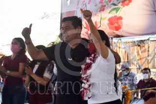 CHILPANCINGO, GUERRERO, 30ABRIL2021.- Continúa Félix Salgado Macedonio, ex candidato de Morena a la gubernatura de Guerrero, apoyando a los candidatos de este partido en Chilpancingo. Durante un evento, donde acompaño a la candidata a la presidencia municipal de Chilpancingo, Norma Otilia Hernández Martínez, dijo que este viernes se define a la que será la nueva candidata para contender en su lugar. Señaló que en caso de que su hija, Evelyn Salgado Pineda, no salga beneficiada en la encuesta, apoyaran a la que el pueblo elija como su representante, ya que él también fue seleccionado por una encuesta y lo que decida el pueblo se debe de respetar. Adelanto que, este sábado al mediodía, acudirá al Instituto Electoral y de Participación Ciudadana Guerrero (IEPCGro) al registro de la mujer que quede como candidata de Morena para contender en este proceso electoral en su lugar. FOTO: DASSAEV TÉLLEZ ADAME/CUARTOSCURO.COM