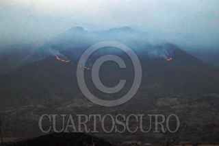 BUENAVISTA DE CUELLAR, GUERRERO, 01MAYO2021.- Desde el pasado miércoles decenas de hectáreas de bosque y hojarasca se queman. El incendio primeramente fue atendido por cuadrillas de vecinos, pero se ha salido de control, afectando varios cerros de este municipio. Se contempla que este día dos helicópteros cisterna de la Comisión Nacional del Agua ayuden a combatir el fuego que se propaga por cañadas y lugares de difícil acceso. FOTO: MARGARITO PÉREZ RETANA /CUARTOSCURO.COM