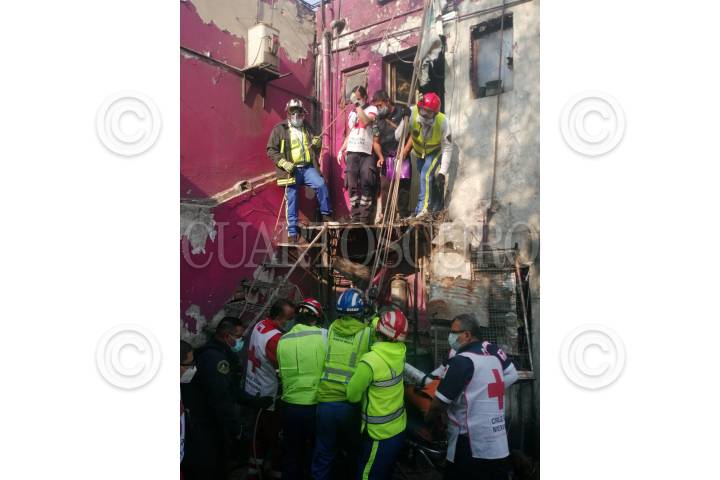 CIUDAD DE MÉXICO, 01MAYO2021.- Un hombre con peso de más de 200 kilogramos fue rescatado tras sufrir un paro cardíaco por paramédicos de la Cruz Roja y del ERUM. Fue bajado del segundo piso con cuerdas y llevado a un hospital. Esto en la lateral de circuito interior esquina con Puccini en la colonia Peralvillo de la alcaldía Cuauhtémoc. FOTO: ARMANDO MONROY/CUARTOSCURO.COM