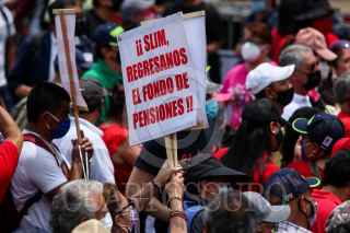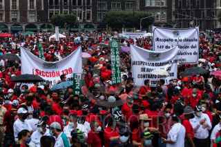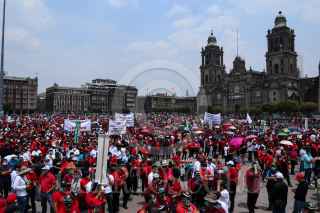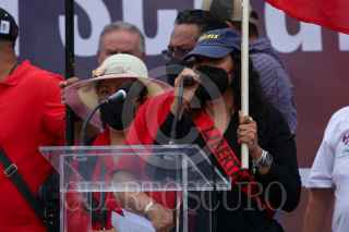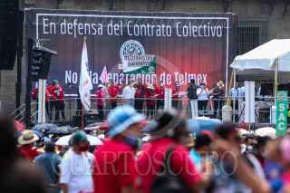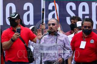 CIUDAD DE MÉXICO, 01MAYO2021.- Con motivo del Día Internacional de los Trabajadores (1ero de Mayo) cientos de sindicalizados de la Industria Nuclear, telefonistas, bachilleres y notimex, por mencionar a algunos, marcharon del Ángel de la Independencia para exigir respeto a los contratos colectivos, respeto a sus derechos laborales y garantías para los trabajadores del país. Francisco Hernández Juárez, dirigente del Sindicato de Telefonistas de la República Mexicana (STRM) fue el encargado de cerrar el mitin en donde agradeció la presencia de los compañeros y exhorto a no rendirse ante la situación por la cual Teléfonos de México (Telmex) atraviesa. FOTO: GALO CAÑAS/CUARTOSCURO.COM