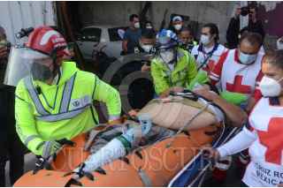 CIUDAD DE MÉXICO, 01MAYO2021.- Un hombre con peso de más de 200 kilogramos fue rescatado tras sufrir un paro cardíaco por paramédicos de la Cruz Roja y del ERUM. Fue bajado del segundo piso con cuerdas y llevado a un hospital. Esto en la lateral de circuito interior esquina con Puccini en la colonia Peralvillo de la alcaldía Cuauhtémoc. FOTO: ARMANDO MONROY/CUARTOSCURO.COM