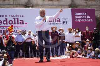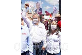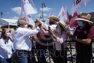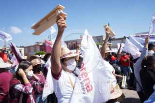 MORELIA, MICHOACÁN, 02MAYO2021.- Más de tres mil personas se dan cita en este momento en la Plaza Valladolid de la ciudad de Morelia para esperar a Alfredo Ramírez Bedolla, candidato a la gubernatura de Michoacán. Personas provenientes de todo el Estado, arribaron desde temprana hora de este domingo, con pancartas, banderas, matracas y sombreros, con la finalidad de apoyar al candidato de la coalición MORENA-PT. FOTO: JUAN JOSÉ ESTRADA SERAFÍN /CUARTOSCURO.COM