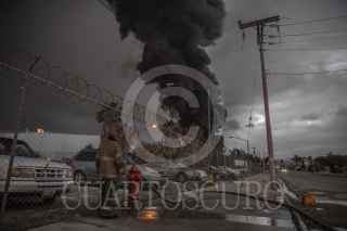TIJUANA, BAJA CALIFORNIA, 02MAYO2021.- Elementos del cuerpo de bomberos trabajaron por más de seis horas para sofocar un incendio registrado en una recicladora ubicada en la colonia Niños Héroes. El incendio fue reportado alrededor de las 16:35 horas y mantuvo laborando a siete estaciones de bomberos que intentaban extinguir el fuego. La recicladora se encuentra cercana al Hospital General Regional del Instituto Mexicano del Seguro Social. No se reportaron lesionados. FOTO: OMAR MARTÍNEZ /CUARTOSCURO.COM