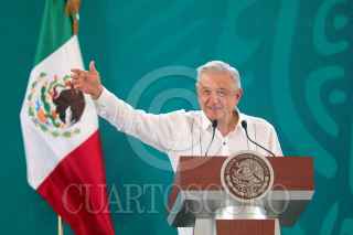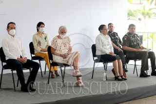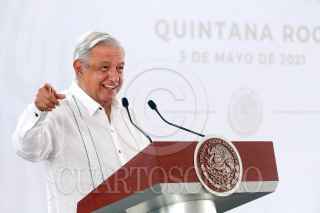 CHETUMAL, QUINTANA ROO, 03MAYO2021.- Andrés Manuel López Obrador, Presidente de México, encabezó su conferencia matutina en esta ciudad. Lo acompañaron al mandatario: Carlos Joaquín González, gobernador de Quintana Roo; Olga Sánchez Cordero, secretaria de Gobernación; Rosa Icela Rodríguez Velázquez, secretaria de Seguridad y Protección Ciudadana; Luis Cresencio Sandoval González, secretario de la Defensa Nacional; José Rafael Ojeda Durán, secretario de Marina; Surit Berenice Romero Domínguez, subprocuradora de Servicios y encargada de despacho de la Procuraduría Federal del Consumidor (Profeco) y Luis Rodríguez Bucio, comandante de la Guardia Nacional. FOTO: PRESIDENCIA/CUARTOSCURO.COM