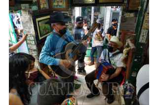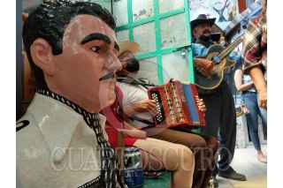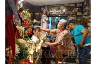 CULIACÁN, SINALOA, 03MAYO2021.- Sin el tradicional recorrido por las calle de la colonia Centro Sinaloa, creyentes de Jesús Malverde celebran el 112 aniversario luctuoso del llamado "Santo de los pobres y de las causas difíciles". Con música de banda y chirrines, decenas de personas han acudido desde la madrugada de este 3 de mayo para rendir tributo a Malverde, quien fue adoptado también por la cultura del narco en los años 80's en Sinaloa. Este día, personas de diferentes partes de México y algunos otros países, acuden a la capilla de Malverde instalada a un costado de Palacio de Gobierno. Por la pandemia del Covid-19 y por segundo año consecutivo, la celebración de Malverde se ha restringido, pero aún así al lugar acuden cientos de creyentes. FOTO: JUAN CARLOS CRUZ/CUARTOSCURO.COM