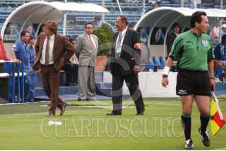 MÉXICO D.F. 19AGOSTO2006.- El director técnico de los Rayados del Monterrey Miguel Herrera al momento de ser expulsado del partido donde con un marcador de 2 a 0 el equipo del Cruz Azul derroto a los Rayados de Monterrey en el Estadio Azul. FOTO: Guillermo Perea/CUARTOSCURO.COM