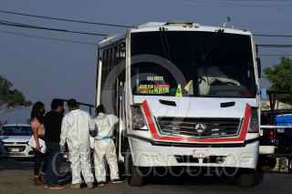 CUERNAVACA, MORELOS, 03MAYO2021.- Un hombre que trabajaba como chofer de la línea del servicio público Ometochtli fue atacado a balazos esta tarde cuando circulaba por la avenida Miguel Hidalgo del poblado de Ocotepec, al norte de la capital. Policía de Morelos resguardo el sitio del ataque, mientras que peritos e investigadores de la Fiscalía del Estado llegaron para levantar evidencias para la averiguación que inicia, finalmente el cadáver fue llevado al anfiteatro por el Servicio Médico Forense. FOTO: MARGARITO PÉREZ RETANA /CUARTOSCURO.COM