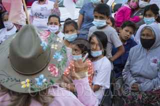 FRESNILLO, ZACATECAS, 03MAYO2021.- Claudia Anaya, candidata a la gobernatura del Estado, por la coalición "Va por Zacatecas", entre el Partido Revolucionario Institucional (PRI), Partido Acción Nacional (PAN) y de la Revolución Democrática (PRD), durante un mitin proselitista en la colonia Las Arboledas de este municipio. FOTO: ADOLFO VLADIMIR /CUARTOSCURO.COM