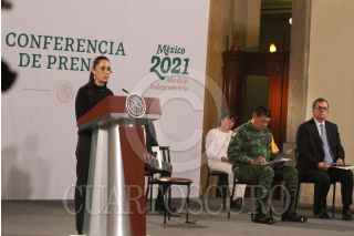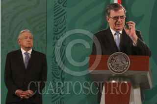 CIUDAD DE MÉXICO 04MAYO2020.- Andrés Manuel López Obrador, presidente de México, Claudia Sheinbaum, jefa de Gobierno y Marcelo Ebrard, secretario de Relaciones Exteriores, encabezaron la conferencia matutina en la que se abordó el tema sobre el colapso del puente de la estación Olivo de la Línea 12 del Metro capitalino. FOTO: ROGELIO MORALES /CUARTOSCURO.COM