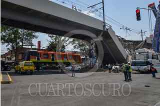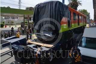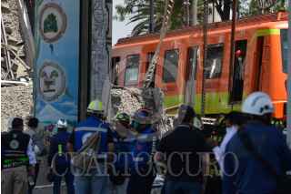 CIUDAD DE MÉXICO, 04MAYO2021.- Bomberos y elementos de Protección Civil con ayuda de grúas levantaron el segundo vagón del convoy de la Línea 12 que sufrió un accidente tras derrumbarse la estructura de la vía cerca de la estación Olivos. FOTO: MARIO JASSO/CUARTOSCURO.COM