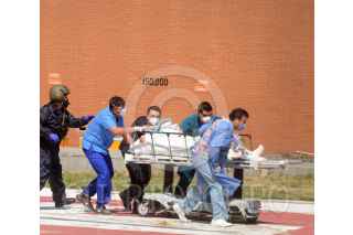 CIUDAD DE MÉXICO, 04MAYO2021.- Fue trasladado un hombre en estado de gravedad por un fuerte golpe en la cabeza que recibió en el accidente que sucedió el ayer en la estación Oliva de la Línea 12. El paciente fue llevado en helicóptero de la Secretaría de Seguridad Ciudadana del Hospital Belisario Domínguez al Hospital Balbuena. FOTO: ARMANDO MONROY/CUARTOSCURO.COM