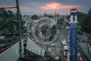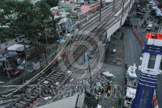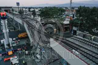 CIUDAD DE MÉXICO, 04MAYO2021.- Peritos de la Fiscalía General de Justicia de la Ciudad de realizaron la revisión a la zona del derrumbe del tren del Metro de la Línea 12 en la estación Olivos, previo al inicio del proceso de remoción de escombros. FOTO: MARIO JASSO/CUARTOSCURO.COM