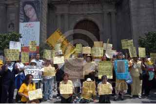 MÉXICO D.F. 20AGOSTO2006.- Simpatizantes del candidato a la presidencia de la república Andrés Manuel López Obrador de la coalición Por el Bien de Todos, fueron sacados de la misa que se realizaba en la Catedral Metropolitana, al manifestarse en silencio a favor del conteo voto por voto. FOTO: Guillermo Perea/CUARTOSCURO.COM