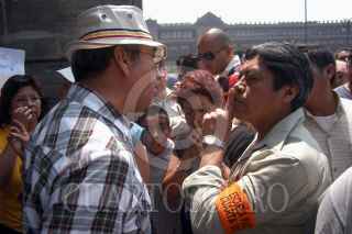 MÉXICO D.F. 20AGOSTO2006.- Simpatizantes del candidato a la presidencia de la república Andrés Manuel López Obrador de la coalición Por el Bien de Todos, fueron sacados de la misa que se realizaba en la Catedral Metropolitana, al manifestarse en silencio a favor del conteo voto por voto. FOTO: Guillermo Perea/CUARTOSCURO.COM
