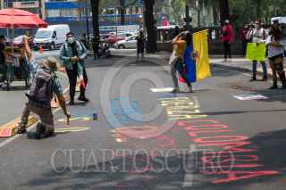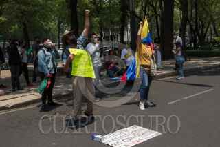 CIUDAD DE MÉXICO, 05MAYO021.- Colombianos se manifestaron afuera del edifico en donde se ubica la embajada de su país en rechazo a la represión policial que se ha vivido en su país durante las protestas para echar abajo la reforma tributaria impulsada por el Presidente Iván Duque. FOTO: MOISÉS PABLO/CUARTOSCURO.COM