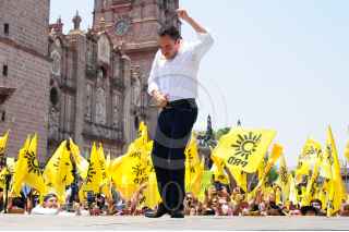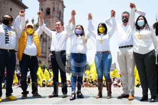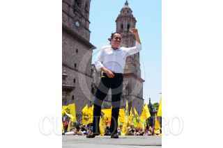 MORELIA, MICHOACÁN, 05MAYO2021.- El Partido de la Revolución Democrática (PRD) llevó a cabo la celebración de su 32 aniversario en un evento al que denominó Encuentro Nacional por la Democracia. Jesús Zambrano, dirigente nacional de esta organización política, encabezó el evento acompañado por el candidato de la alianza Va X México para la gobernatura de Michoacán, Carlos Herrera Tello. FOTO: DANIEL AUGUSTO /CUARTOSCURO.COM