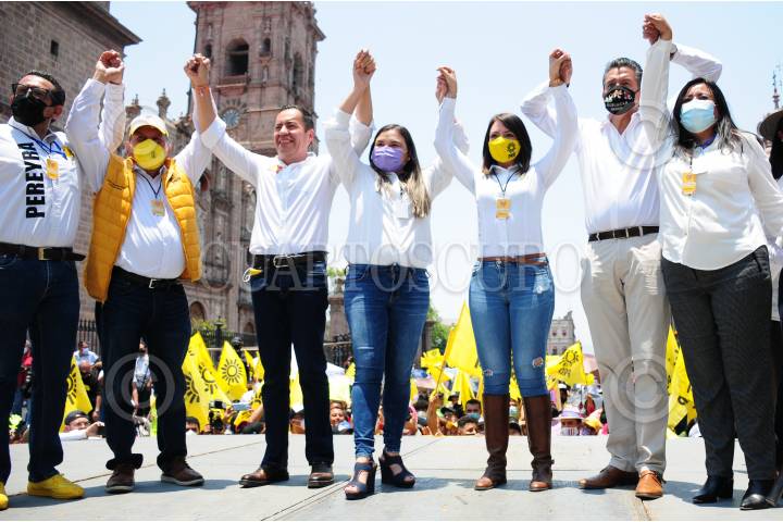 MORELIA, MICHOACÁN, 05MAYO2021.- El Partido de la Revolución Democrática (PRD) llevó a cabo la celebración de su 32 aniversario en un evento al que denominó Encuentro Nacional por la Democracia. Jesús Zambrano, dirigente nacional de esta organización política, encabezó el evento acompañado por el candidato de la alianza Va X México para la gobernatura de Michoacán, Carlos Herrera Tello. FOTO: DANIEL AUGUSTO /CUARTOSCURO.COM