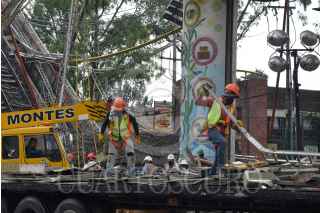 CIUDAD DE MÉXICO, 05MAYO2021.- Comenzaron los trabajos de remoción de escombros de la zona del accidente del Metro de la Línea 12, ocurrido cerca de la estación Olivos. FOTO: MARIO JASSO/CUARTOSCURO.COM