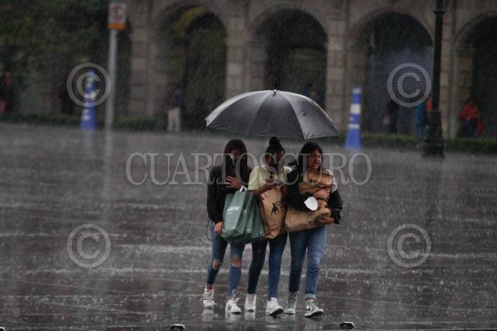 CIUDAD DE MÉXICO, 05MAYO2021.- Se presentaron lluvias en el Centro Histórico de la capital. La temperatura que se presenta esta noche es de 15°C con sensación de 13°C. Capitalinos se cubrieron de las gotas de agua con sombrilla, bolsas de plástico y objetos personales. FOTO: GRACIELA LÓPEZ /CUARTOSCURO.COM
