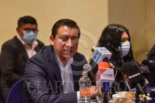 TOLUCA, ESTADO DE MÉXICO, 06MAYO2021.- René Reza Molina, presidente municipal de Xalatlaco realizó una denuncia de presunta extorsión por parte del Partido Verde Ecologista de Mexico y de su líder estatal José Alberto Couttolenc, presentando diversas conversaciones y documentos en donde le pedían diversas cantidades de dinero, y emprendiendo una campaña de desprestigio en su contra, las cuales presentó durante una conferencia a medios de comunicación. FOTO: CRISANTA ESPINOSA AGUILAR /CUARTOSCURO.COM