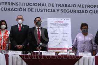 CIUDAD DE MÉXICO, 06MAYO2021.- Alejandro Jaime Gómez, fiscal general de Justicia del Estado de México, Abraham Borden Camacho, encargado de despacho en Miguel Hidalgo, y Ernestina Godoy, fiscal general de la Ciudad de México, encabezaron la Mesa Interinstitucional de Trabajo Metropolitano en Procuración de Justicia y Seguridad Ciudadana. La iniciativa busca una mayor coordinación y cooperación entre las fuerzas de seguridad de las alcaldías y municipios del Estado de México a fin de facilitar detenciones o desarticular bandas delictivas y con ello garantizar la seguridad de la ciudadanía. Al término del evento, la fiscal no quiso dar declaraciones respecto a las investigaciones del incidente ocurrido en la Línea 12 del metro, que cobró la vida de 25 personas, y estableció que en un futuro se brindará toda la información. FOTO: GALO CAÑAS/CUARTOSCURO.COM
