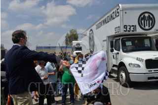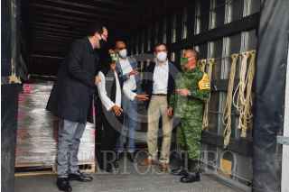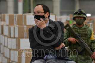 TEPOTZOTLÁN, ESTADO DE MÉXICO, 07MAYO2021.- Lorenzo Córdova, consejero presidente del Instituto Nacional Electoral (INE) encabezó el banderazo de salida de la distribución de las 102 millones de boletas electorales y material de casillas para los comicios del próximo 6 de junio. Las unidades con el material electoral serán custodiados por elementos del ejército nacional a los distintos estados de la República. FOTO: MARIO JASSO/CUARTOSCURO.COM