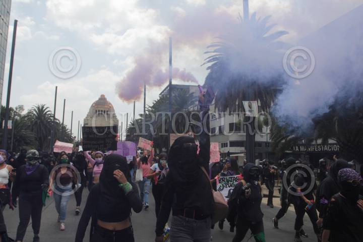 CIUDAD DE MÉXICO, 07MAYO2021.- La colectiva "Brujas encapuchadas" acompañada de otras colectivas feministas encabezaron una marcha para exigir justicia por los feminicidios ocurridos diariamente en el país. La manifestación dio inicio en el Monumento a la Revolución y terminó en el Zócalo capitalino. FOTO: GRACIELA LÓPEZ /CUARTOSCURO.COM