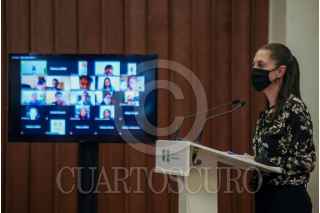 CIUDAD DE MÉXICO, 07MAYO2021.- Claudia Sheinbaum, jefa de Gobierno y Eduardo Clark García, director General de Gobierno Digital de la ADIP, encabezaron la videoconferencia diaria en la que anunciaron que la capital pasará el próximo 10 de mayo a Semáforo Epidemiológico Amarillo. FOTO: GOB CDMX/CUARTOSCURO.COM