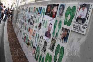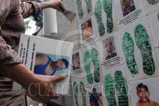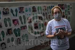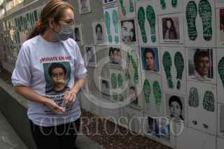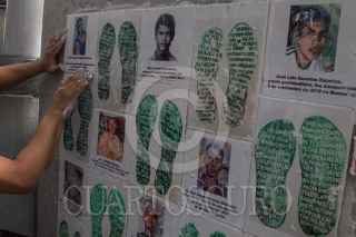 CIUDAD DE MÉXICO, 09MAYO2021.- Madres de migrantes centroamericanos desaparecidos durante su travesía en nuestro país realizaron el muro de la memoria, en el cual fueron colocados mosaicos con los rostros de sus seres queridos de quienes no saben nada, frente a la entrada principal de la Fiscalía General de la República. Esto en el marco de la conmemoración del Día de las Madres, ya que ellos reiteran no tienen nada que festejar. FOTO: MOISÉS PABLO/CUARTOSCURO.COM