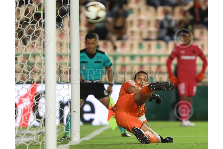 LEÓN, GUANAJUATO, 09MAYO2021.- Este domingo, el equipo de León recibió a los Diablos Rojos del Toluca, como parte del tercer juego de repechaje rumbo a la Liguilla 2021, los locales se pusieron al frente en el marcador por conducto de Víctor Davila, en el segundo tiempo, el equipo mexiquense le dio la vuelta con goles de Alexis Canelo y Kevin Castañeda y a unos minutos del final, él joven Ambriz empató el encuentro llevando el juego hasta la tanda de penales, donde los Diablos Rojos se impusieron. FOTO: ESTEBAN HERNÁNDEZ /CUARTOSCURO.COM