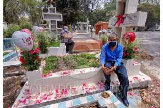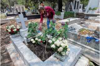 CIUDAD DE MÉXICO, 10MAYO2021.- El Panteón Dolores abrió sus puertas para las personas que quisieron visitar las tumbas de sus seres queridos con motivo del festejo del Día de las Madres, las autoridades han señalado que seguirá cerrado pero debido a que la ciudad entró a Semáforo Amarillo de la alerta epidemiológica de la pandemia de Covid-19 se permitió que entrarán grupos reducidos. Las personas limpiaron y llevaron flores para aquellos que ya partieron. FOTO: MOISÉS PABLO/CUARTOSCURO.COM