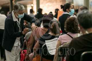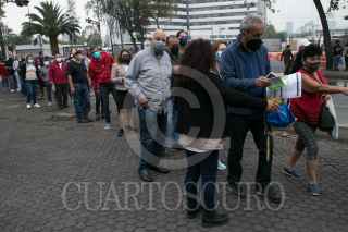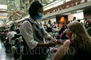 CIUDAD DE MÉXICO, 11MAYO2021.- Hombres y mujeres de 50 a 59 años de edad acudieron a la biblioteca Vasconcelos para recibir la primer dosis de la vacuna de Pfizer contra la Covid-19. Autoridades de salud confirmaron esta mañana que ya son más de 14 millones de personas en México quienes han recibido al menos una dosis de cualquiera de las vacunas aprobadas para combatir la pandemia de Sars-Cov-2. FOTO: GALO CAÑAS/CUARTOSCURO.COM