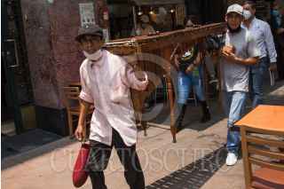CIUDAD DE MÉXICO, 12MAYO2021.- Marimberos cargan su instrumento de trabajo por las calles del Centro Histórico, en donde se ganan la vida ofreciendo música a cambio de unas monedas. FOTO: MOISÉS PABLO/CUARTOSCURO.COM