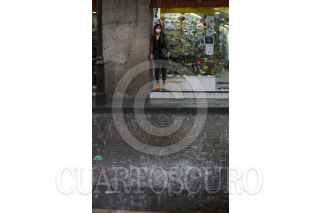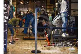 TOLUCA, ESTADO DE MÉXICO, 11MAYO2021.- Por sorpresa tomó la lluvia a los habitantes de la capital mexiquense la tarde de este martes, algunos negocios de los Portales de Toluca se empezó a meter salir el agua del drenaje y tuvieron que sacarla con trapeadores. FOTO: CRISANTA ESPINOSA AGUILAR /CUARTOSCURO.COM