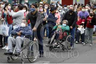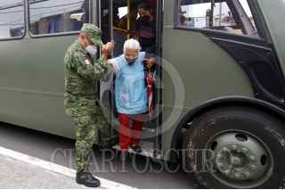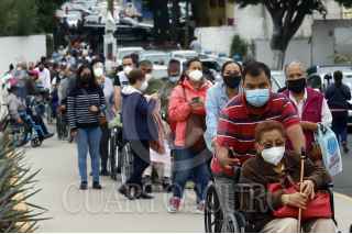 PUEBLA, PUEBLA, 11MAYO2021.- Inicia en la capital poblana la aplicación de la segunda dosis de vacuna anti Covid-19, por lo que adultos mayores de 80 años y de 60 con alguna discapacidad, esperan en la rampa de la XXV Zona Militar para ser inoculados. FOTO: MIREYA NOVO/CUARTOSCURO.COM