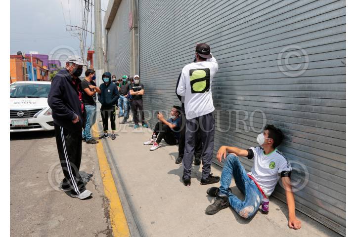 TOLUCA, ESTADO DE MÉXICO, 11MAYO2021.- Aficionados a los Diablos Rojos del Toluca se dieron cita en el Estadio Nemesio Diez para conseguir boletos para el encuentro de este miércoles ante la escuadra de la Máquina de Cruz Azul partido de ida de Cuartos de Final de la Liguilla del Clausura 2021 de la Liga MX, no importó esperar varias horas en el sol e incluso bajo la lluvia que se registró la tarde de este martes, que serán abiertas las puertas al público con un aforo del 25 por ciento de su capacidad al permanecer la entidad mexiquense en semáforo epidemiológico color amarillo. FOTO: CRISANTA ESPINOSA AGUILAR /CUARTOSCURO.COM