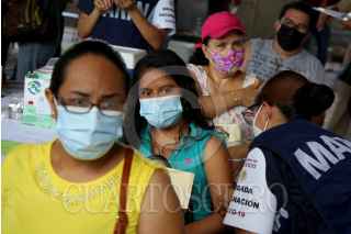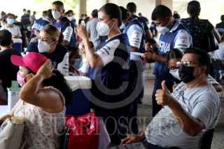 ACAPULCO, GUERRERO, 11MAYO2021.- Maestros y trabajadores administrativos del sector de la educación de Acapulco acudieron desde muy temprano para aplicarse la vacuna contra covid-19, personal médico de la Marina fue el encargado de la aplicación de la vacuna y de la logística, algunos maestros mencionaron sentir aun temor de regresar a clases presenciales. FOTO: CARLOS ALBERTO CARBAJAL/CUARTOSCURO.COM