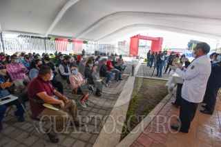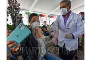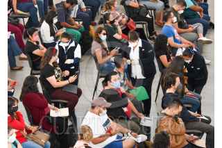 TOLUCA, ESTADO DE MÉXICO, 12MAYO2021.- Este día comenzó la vacunación contra COVID-19 a maestros en el Estado de México, en la región Toluca fueron instalados dos centros de vacunación, uno de ellos en el Centro de Convenciones Toluca en donde se dieron cita desde muy temprana hora los profesores para recibir la vacuna de CanSino Biologics Inc. llamada Convidencia, quienes agradecieron al personal médico por su trabajo y los maestros recibieron una felicitación adelantada al Día del Maestro. FOTO: CRISANTA ESPINOSA AGUILAR /CUARTOSCURO.COM