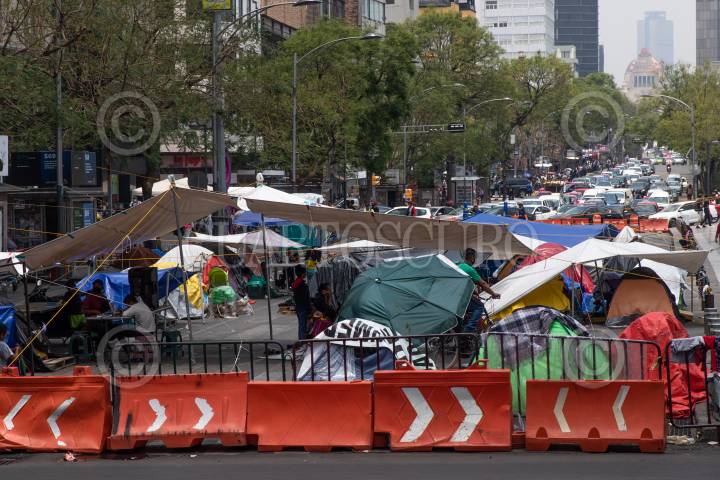 CIUDAD DE MÉXICO, 12MAYO2021.- El campamento de desplazados de Tierra Blanca Copala, Oaxaca, se replegó hacia avenida Juárez, dejando vía libre en Eje Central, ambas vialidades han sido bloqueadas varias semanas por habitantes de esta zona del país, quienes denunciaron que tuvieron que salir de sus casas por la violencia que se vive en sus comunidades de origen. FOTO: MOISÉS PABLO/CUARTOSCURO.COM