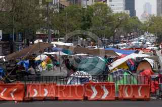 CIUDAD DE MÉXICO, 12MAYO2021.- El campamento de desplazados de Tierra Blanca Copala, Oaxaca, se replegó hacia avenida Juárez, dejando vía libre en Eje Central, ambas vialidades han sido bloqueadas varias semanas por habitantes de esta zona del país, quienes denunciaron que tuvieron que salir de sus casas por la violencia que se vive en sus comunidades de origen. FOTO: MOISÉS PABLO/CUARTOSCURO.COM