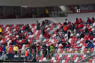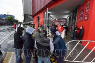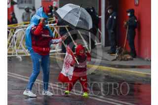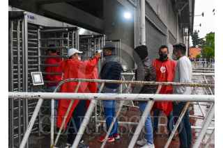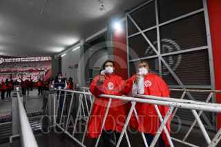 TOLUCA, ESTADO DE MÉXICO, 12MAYO2021.- El encuentro entre Los Diablos Rojos del Toluca y la Máquina de Cruz Azul partido de ida de Cuartos de Final de la Liguilla del Torneo Guardianes Clausura 2021, pudo realizarse con público en el Estadio Nemesio Diez, al estar en semáforo epidemiológico color amarillo en el estadio Nemesio Diez; toma de temperatura, gel antibacterial, lugares separados fueron algunas de las medidas para que los aficionados pudieran entrar al estadio después de más de un año de permanecer cerrado y no poder disfrutar de este tipo de eventos a causa de la pandemia por COVID-19. FOTO: CRISANTA ESPINOSA AGUILAR /CUARTOSCURO.COM
