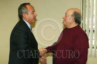 MÉXICO, D.F. 21AGOSTO2006.- Felipe Calderón, candidato panista a la Presidencia de la República, se reunió con representantes de organizaciones civiles, entre ellos Germán Dehesa. FOTO: Alfredo Guerrero/CUARTOSCURO.COM